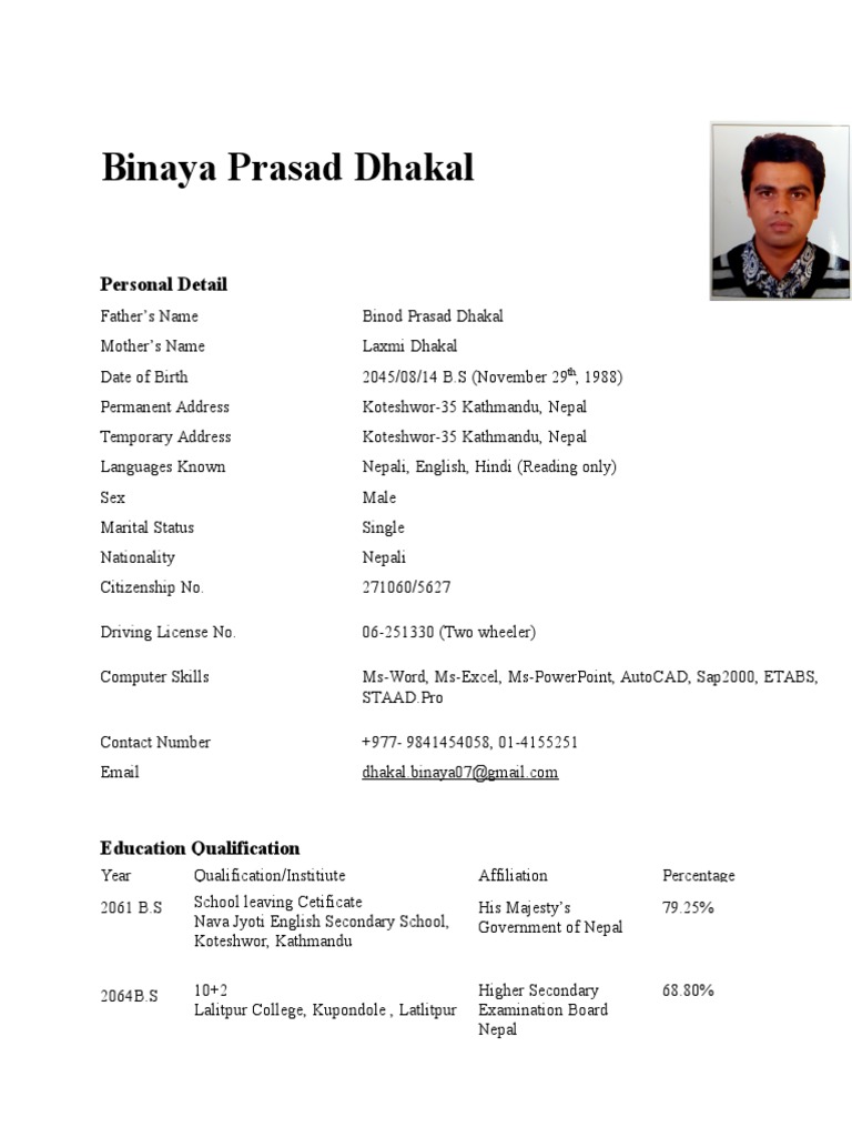 Sample of cv for job application in nepal.